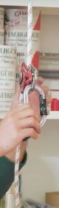 Además, tiene una disipadora que es muy importante ante una caída. Porque si sufrimos una caída y solo tenemos la cuerda, la fuerza que va a ejercer nuestro peso y el arnés, puede hacernos mucho daño. El disipador lo que va a hacer es extenderse y aligerar ese impacto que vamos a recibir en nuestro cuerpo.