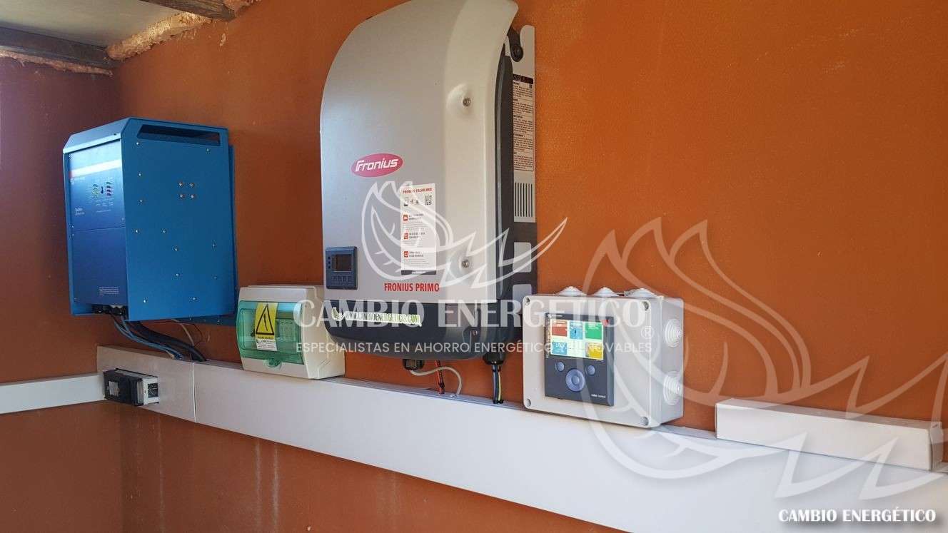 La instalación está gestionada y por un inversor de red Fronius que controla la potencia que entra por los paneles solares y por 3 inversores cargadores Victron que convierten la corriente en trifásica y, se encargan de cargar la batería y de llevar la energía producida a los consumos.